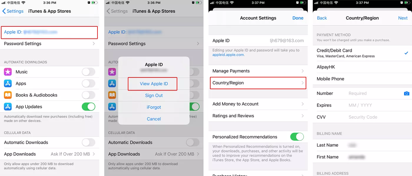 - انتخاب کشور برای ساخت اپل آیدی