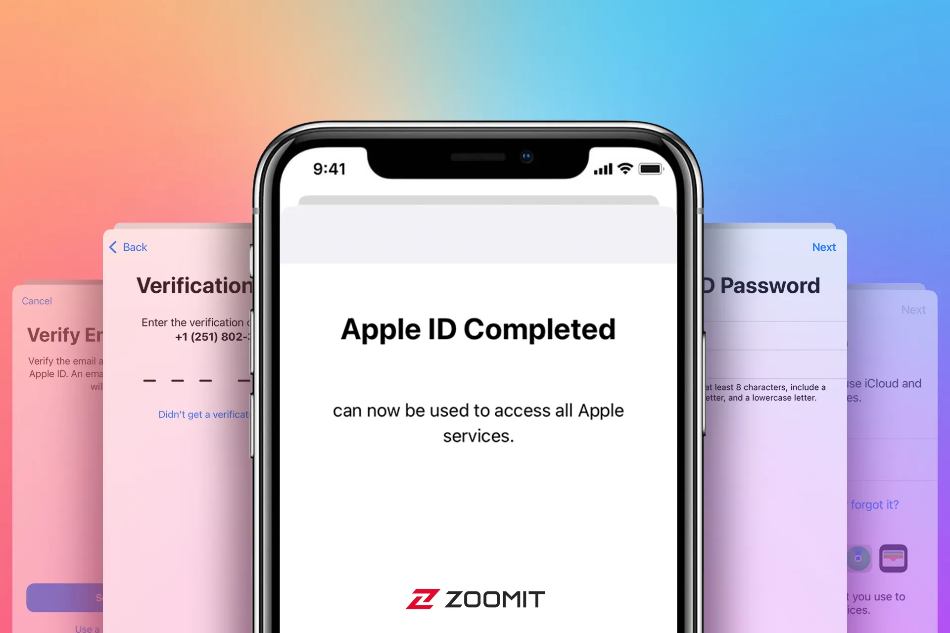 - در هر یک از روش های ایجاد Apple ID، مراحل تکمیل حساب کاربری خود را دنبال کنید تا بتوانید با استفاده از راه حل های مختلف (ایمیل پشتیبان، سوالات امنیتی یا کلید بازیابی) به حساب خود دسترسی پیدا کنید.