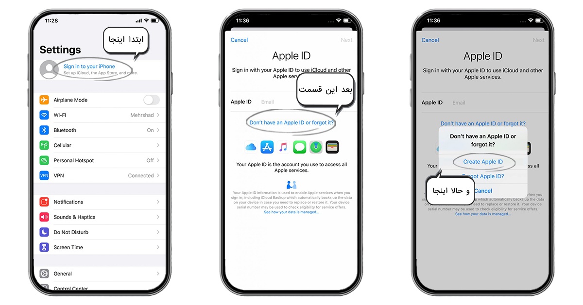 - با مراجعه به سایت یک Apple ID ایجاد کنید