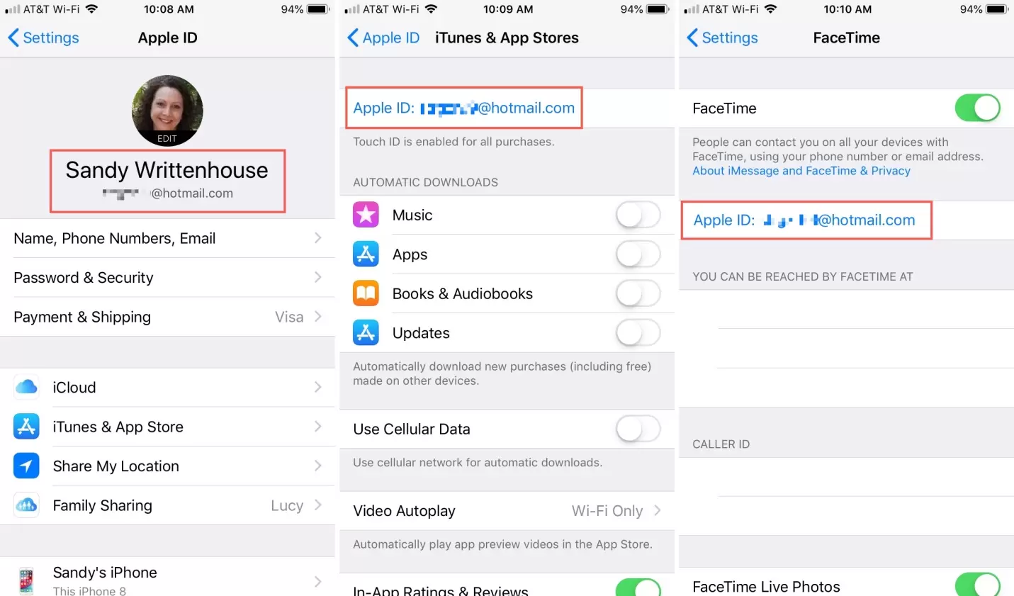 Face Time: قسمت Settings را باز کرده و گزینه Face Time را انتخاب کنید، Apple ID شما در بالای صفحه ظاهر می شود.
