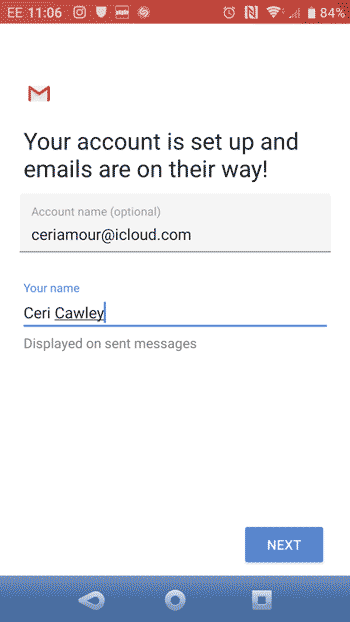 از اینجا جیمیل بقیه کارها را انجام می دهد و چند لحظه دیگر حساب ایمیل iCloud خود را در اپلیکیشن جیمیل خواهید دید.