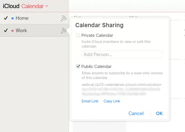 - قسمتی که می گوید Public Calendar را انتخاب کنید و وقتی URL WebCal ظاهر شد بر روی Email Link کلیک کنید.