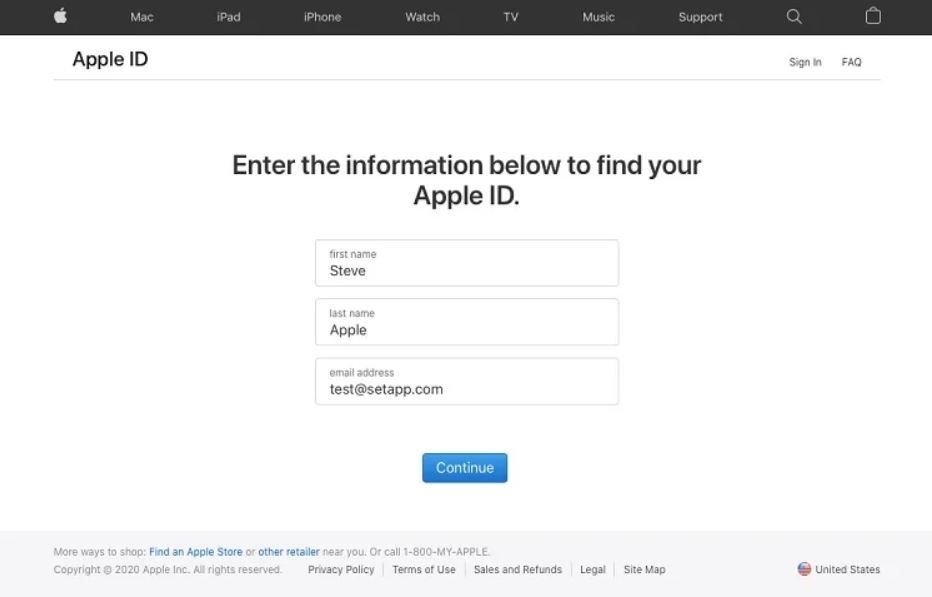 - وب سایت اپل برای بازیابی اپل آیدی